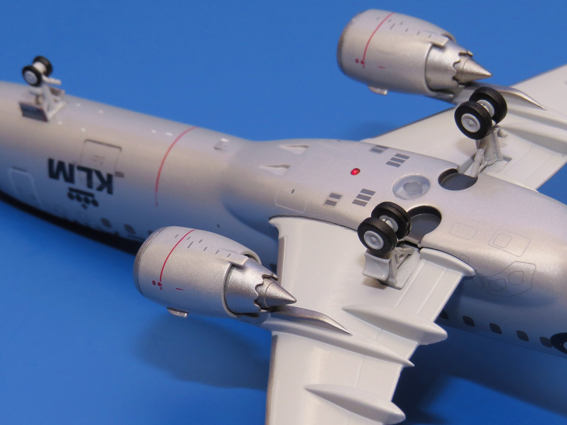 Уважаемые коллекционеры! Рад представить вашему вниманию фотообзор моей новой модели, относительно недавно появившейся в коллекции — Embraer 190STD KLM в фирменной ливрее альянса SkyTeam. Данная модель была уже давно в моём списке пожеланий, ещё даже до того, как была выпущена. И хорошо, что производитель JC Wings, и что масштаб 1:200, а не 1:400. Хотел именно от JC Wings в двухсотом, потому что планировал покупать в пару к уже имеющемуся в коллекции Embraer 190STD KLM Cityhopper PH-EZP (в обычной ливрее) от Gemini 200, чтобы пресс-форма была одинаковой. И хотя разница в выпуске этих моделей составляет, если не ошибаюсь, почти 9 лет, пресс-форма существенно не изменилась. Винглеты на крыльях так и остались слишком длинными, а вот диски колёс на передней стойке стали более похожи на правду: рельефные и окрашены в светло-серый цвет, как впрочем и на основных стойках шасси. На ранней версии этой пресс-формы диски были просто плоские и неокрашенные. Во всём остальном – модель замечательная. Как и полагается, фюзеляж, крылья, горизонтальные стабилизаторы и хвост выполнены из металла. Покрашена модель аккуратно, и в абсолютно правильные цвета. Конечно же, есть все, даже самые мельчайшие технические надписи, вращающиеся лопатки вентиляторов двигателей. Антенны и маячки — само собой разумеется. Модель комплектуется подставкой, но опции полётной конфигурации нет (только с выпущенными шасси).