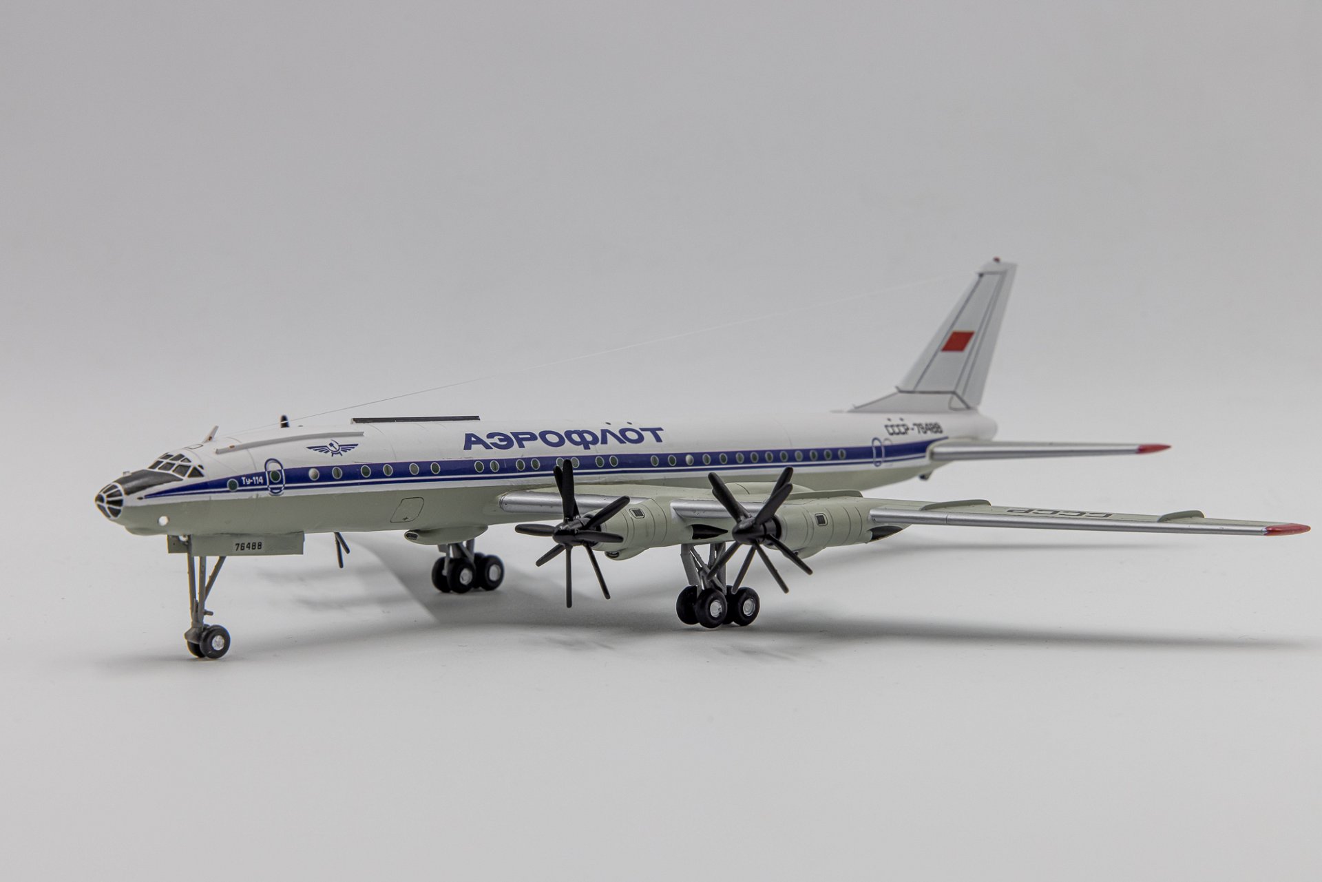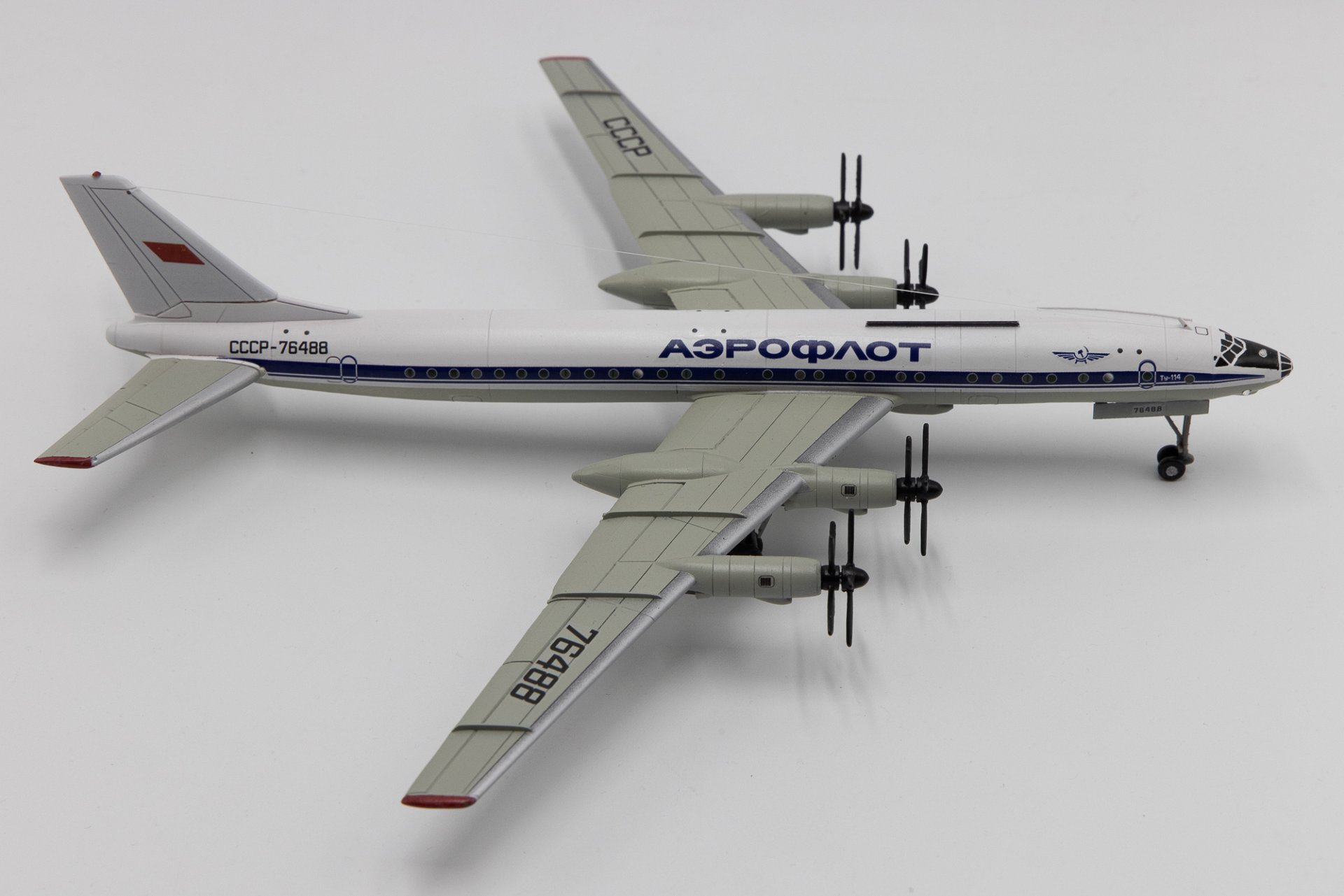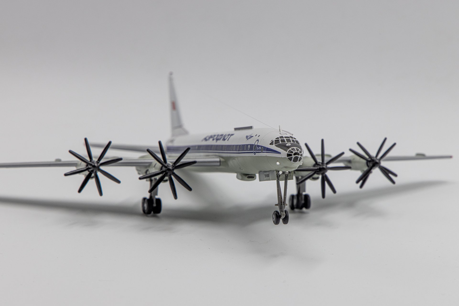 Именно недоступность приобретения в том числе и этой модели (Ту-114) сиречь - фактическое отсутствие этой машины в масштабе 1/200 у крупносерийных производителей побудило меня с моим другом и тоже коллекционером, Игорем Егоровым, взяться за ее изготовление, используя технологии 3D моделирования, включающие печать и постройку данного экземпляра. Несмотря на годовалый опыт такой работы (ранее по такой технологии были изготовлены модели Ту-104 и Як-42) рождение самой крупной модели проходило медленно и тяжело. Достаточно сказать, что с первого раза удалось изготовить лишь крылья с мотогондолами. Элементы хвостового оперения и фюзеляжа переделывались неоднократно несмотря на отличные чертежи из ныне почившей «Авиация и Время».