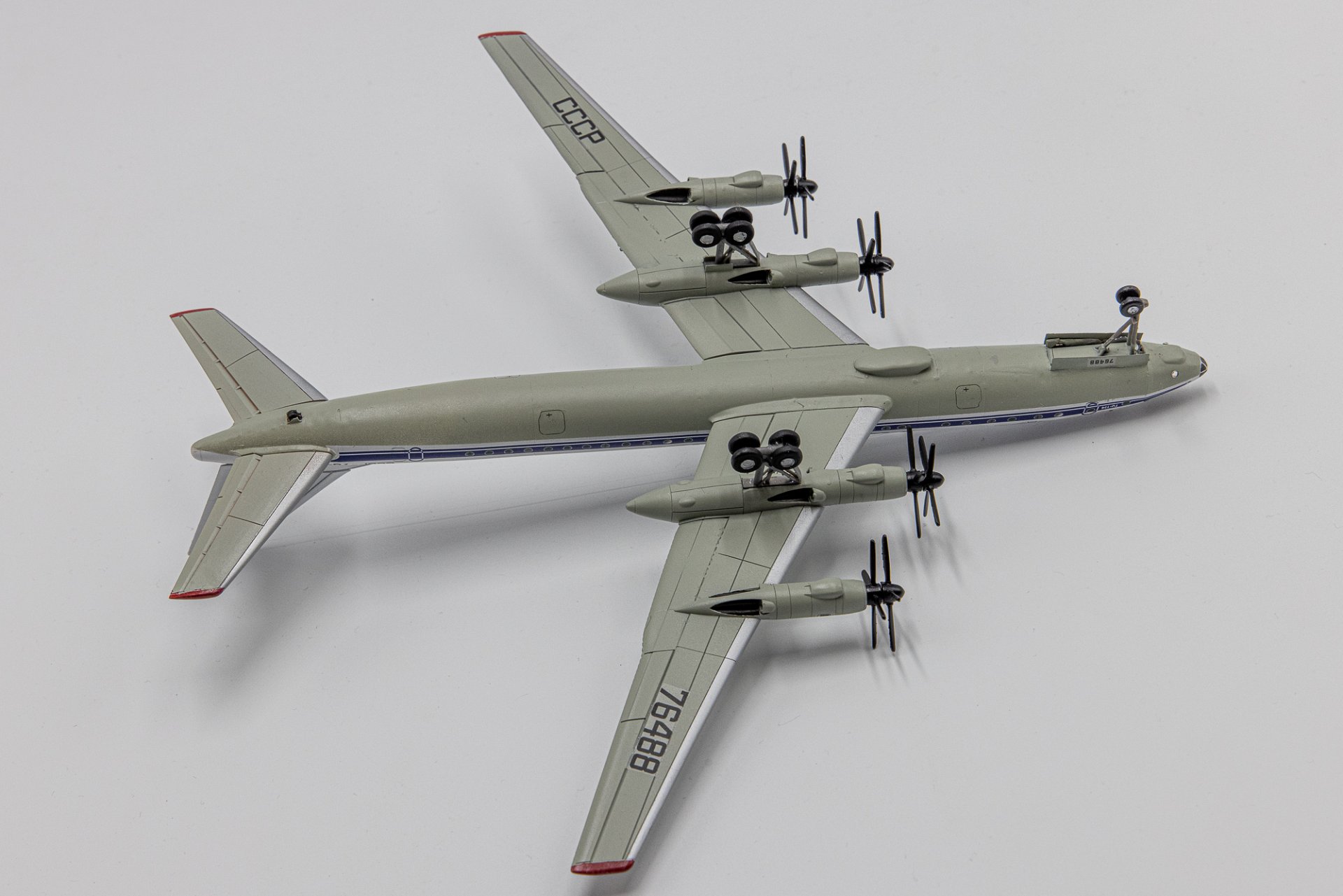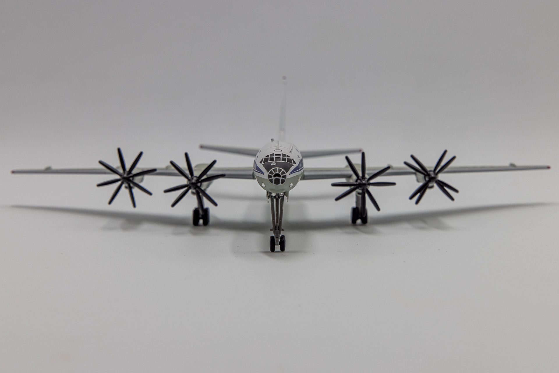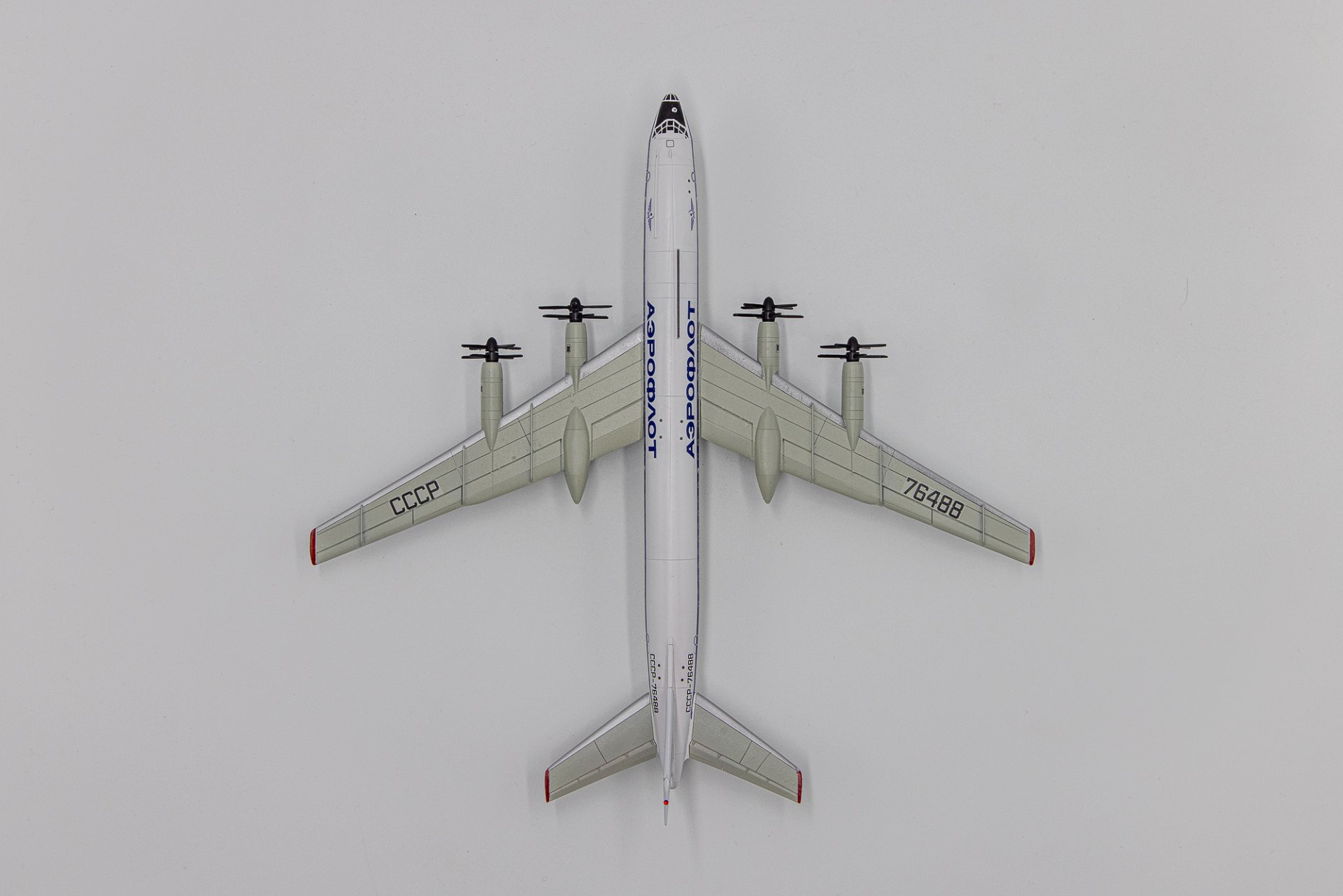 Именно недоступность приобретения в том числе и этой модели (Ту-114) сиречь - фактическое отсутствие этой машины в масштабе 1/200 у крупносерийных производителей побудило меня с моим другом и тоже коллекционером, Игорем Егоровым, взяться за ее изготовление, используя технологии 3D моделирования, включающие печать и постройку данного экземпляра. Несмотря на годовалый опыт такой работы (ранее по такой технологии были изготовлены модели Ту-104 и Як-42) рождение самой крупной модели проходило медленно и тяжело. Достаточно сказать, что с первого раза удалось изготовить лишь крылья с мотогондолами. Элементы хвостового оперения и фюзеляжа переделывались неоднократно несмотря на отличные чертежи из ныне почившей «Авиация и Время».