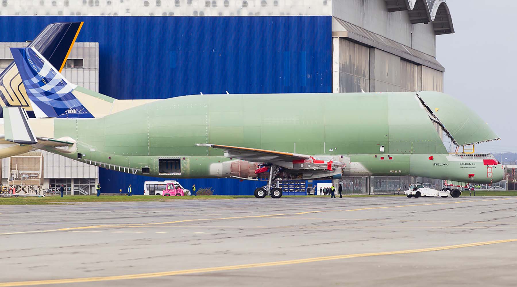 Именно это и подчеркивает элемент современной окраски смолета Beluga XL.