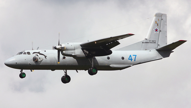 Передняя антенна у этой модели Ан-26 более тонкая и изящная.
