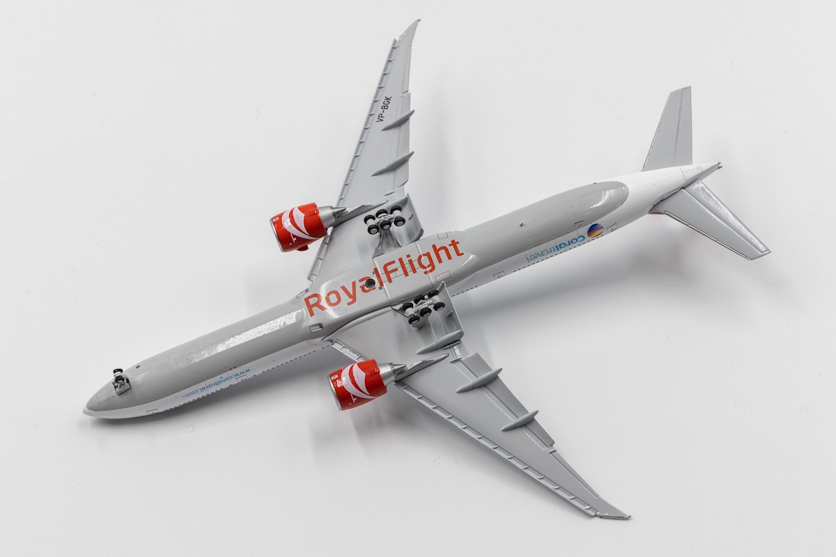 Бывший самолет авиакомпании Emirates (в которой он летал с 2005 до 2019 гг.) через лизинговую компанию был передан в Royal Flights. В июле 2019 года этот лайнер, получивший новый регистрационный номер VP-BGK, начал возит российских туристов на морские курорты Европы, Азии и Центральной Америки. Помимо ливреи авиакомпании, на самолет был нанесен логотип туроператора Coral Travel, в интересах которого и выполнялись полеты.