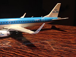 Переходим к самой модели. Я собираю в основном региональную и ближнемагистральную авиацию, поэтому без самолетов Embraer коллекция была бы явно неполной. На данный момент у меня их два: 190 KLM и 170 United Express. Обе модели от Gemini Jets. Сами модели - замечательны, как по качеству проработки и количеству мелких деталей, так и по такому очень меня волнующему параметру, как технологическое членение. Детали модели хорошо пролиты и подогнаны, поэтому стыковочные швы не портят общее впечатление. Приятно. ./. ./extensions/custom_smilies_2/img1/wink