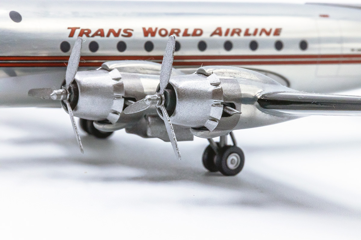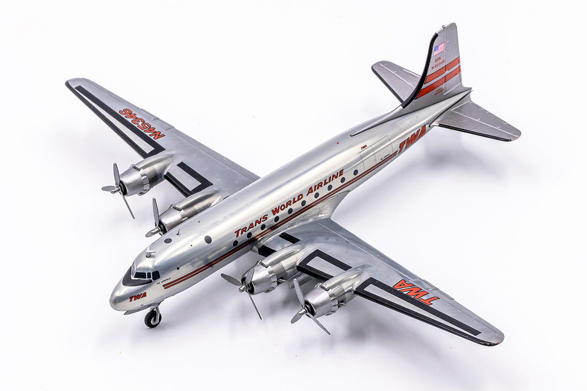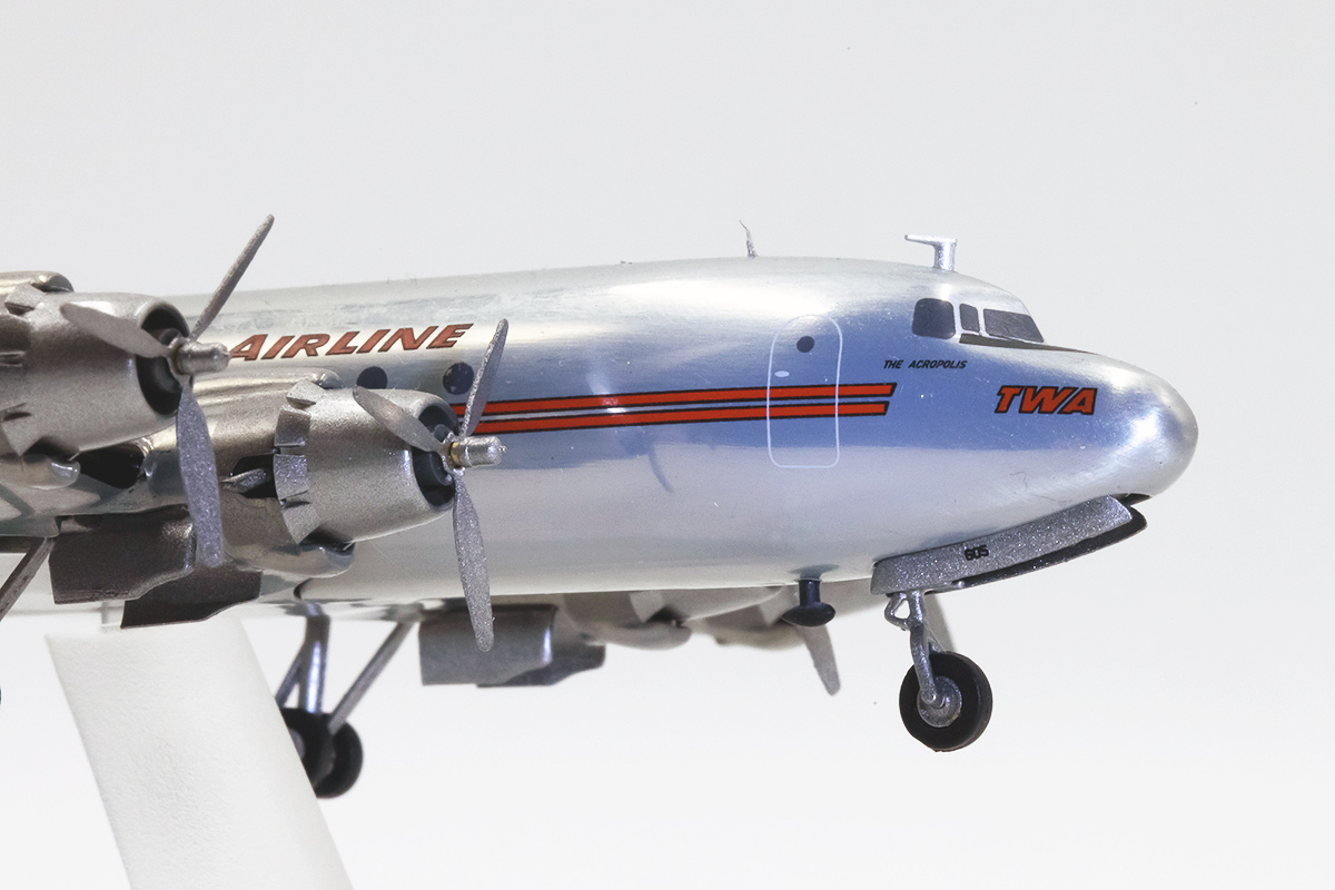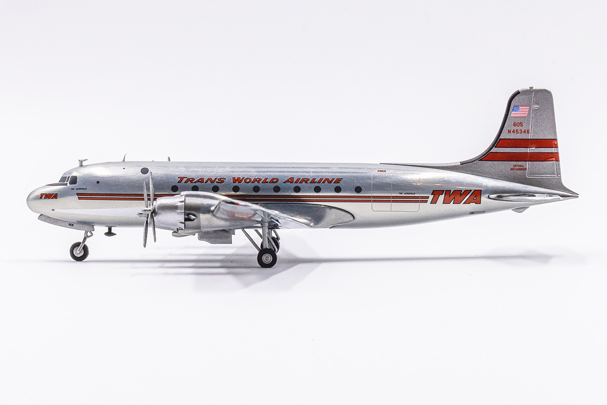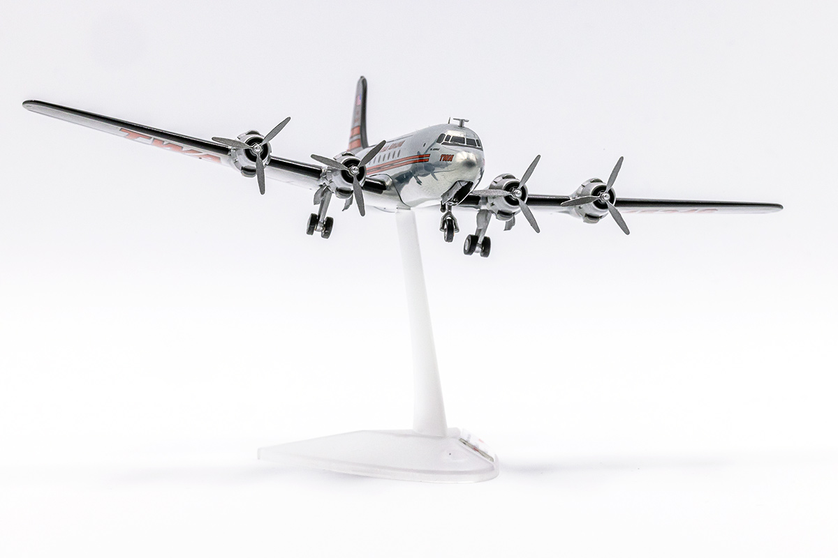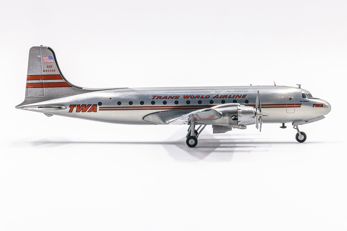 Авиалайнеры DC-4 авиакомпания TWA получила сразу же после окончания Второй мировой войны и использовала их, в основном, на африканском маршруте из Нью-Йорка в Каир. "Херпа" выбрала для своей модели ливрею TWA 1940-50х гг.