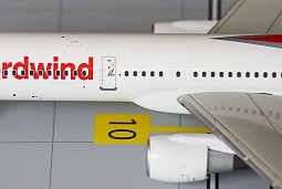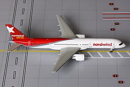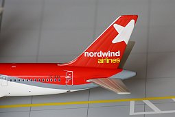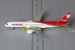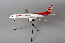 Российская авиакомпания "Nordwind Airlines" (Северный ветер) была образована в 2008 году и за истекшие 5 лет стала одной из ведущих российских авиакомпаний. Главный вид деятельности перевозчика - выполнение чартерных рейсов на популярные мировые курорты из многих городов России. В первые годы деятельности основным самолетом авиакомпании был Boeing 757-200. Именно модель этого авиалайнера в масштабе 1:200 выпустила в ноябре 2013 года гонконгская фирма "JC Wings".