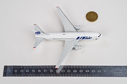 Металлическая модель представляет собой уменьшенную копию действующего самолета авиакомпании "ЮТэйр" с бортовым номером VP-BAB.