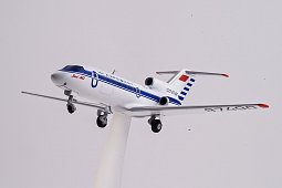 При установке на подставку модель воспроизводит состояние "в полете". Смотрится модель при этом очень похоже на настоящий самолет Як-40.