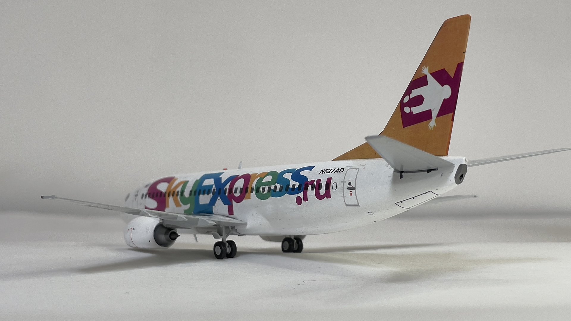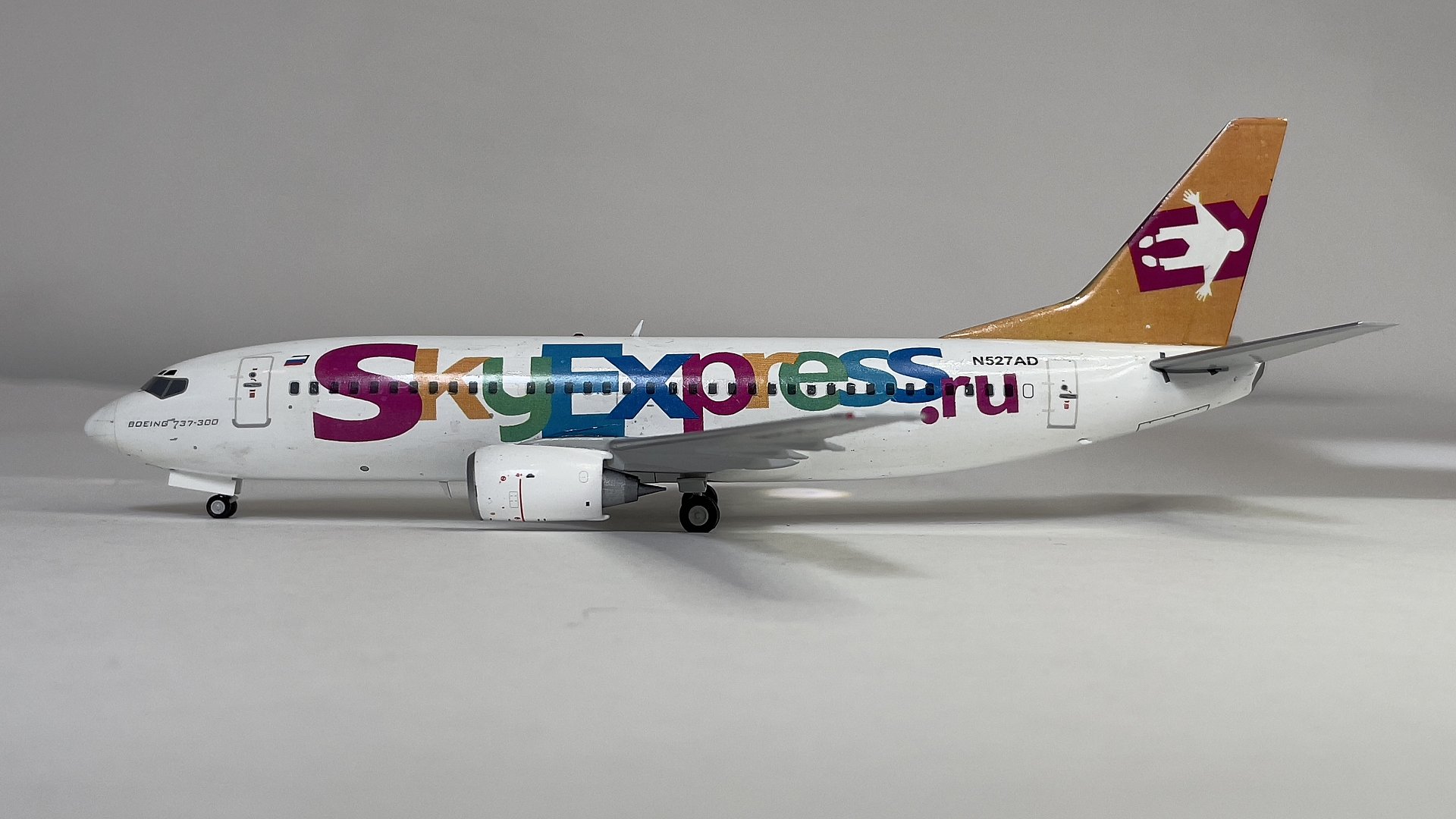 Представляю вам модель самолета Boeing 737-300 российской авиакомпании и первого лоукостера Sky Express в масштабе 1/200 от AviaModel Club. Я не задумываясь приобрел эту модель в интернет магазине "Минилайнер" потому как эта модель объединяет меня и реальный самолет на котором я работал пилотом в этой авиакомпании в период с 2007 года по 2009год. Модель представлена с бортовым номером американской регистрации N527AD присвоенным на начало работы в авиакомпании WFBN (как я понял компания, работавшая на один из американских банков). После распада этой авиакомпании самолет 1986 года выпуска был продан в лизинговую компанию, у которой Sky Express приобрели в лизинг вышеупомянутый самолет, где его и перекрасили в ливрею авиакомпании. Самолет оставался в Майами с российской ливреей и американской регистрацией, пока его не перегнали в Россию.