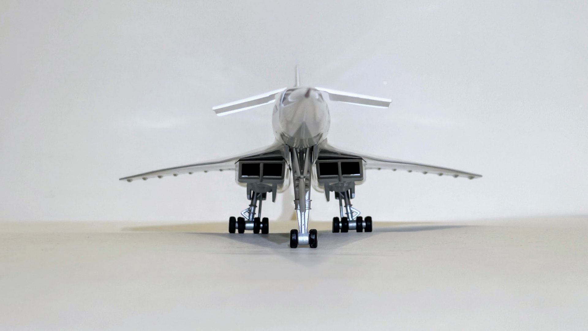 2.Стояночная или парковочная конфигурация с выпущенным шасси и убранным ПГО (имеются дополнительные крылышки для этого положения), а также убранного положения носовой части. В любом случае модель изготовлена с выпущенным шасси. Полетный вариант не предусмотрен.