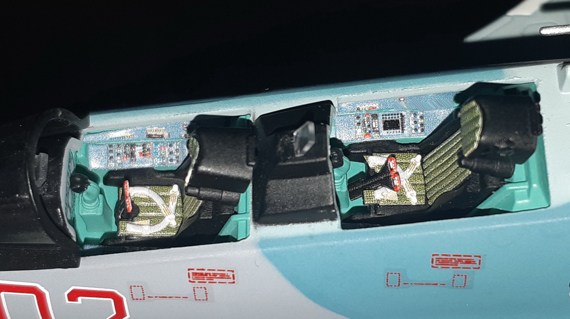 При доработке использовал декали «сборной солянки», которые могли подойти к Су-27, Су-27УБ, Су-33, Су-35. Конкретно к Су-30СМ (кроме кабины) найти не смог, поэтому немного импровизировал, согласно фото прототипа и прилагаемых к декалям схем нанесения надписей, но без фанатизма))