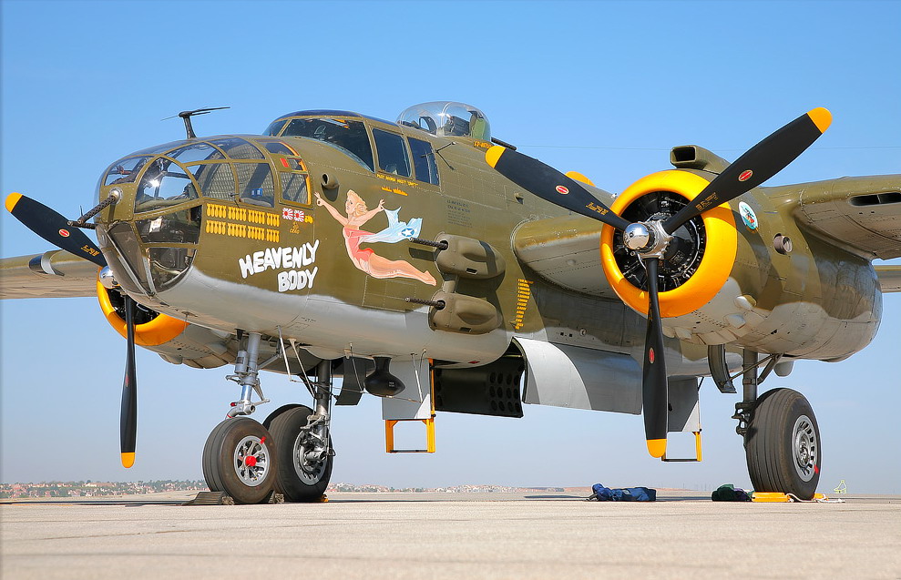 B-25J-25-NC USAAF S/N 44-30748 был передан армейским ВВС, на этапе завершения Второй мировой войны. К этому периоду уже отпала острая необходимость в бомбардировщиках данного типа, и B-25 Митчелл был доставлен в Саут-Плейнс, штат Техас, для консервации и хранения (около 1000 Митчеллов хранились и продолжали летать в ВВС США после Второй мировой войны). В июле 1947 года 44-30748 был расконсервирован, приведен в состояние летной годности и переправлен в Пайот, штат Техас, для дальнейшего хранения. Этот B-25J оставался на вооружении в качестве многомоторного усовершенствованного тренажера TB-25J для военных пилотов вплоть до 1958 года. После снятия с вооружения в январе 1959 года самолет был приобретен компанией Avery Aviation и базировался в Грейбулле, штат Вайоминг. В 1969 году он был продан компании Filmways Inc. и использовался Tallmantz Aviation в округе Ориндж для съемок фильма Paramount "Catch-22" и был одним из 18 самолетов B-25, использованных в этом фильме. В 1972 году он был куплен частным коллекционером, отреставрирован и начиная с 1974 года начал летать и участвовать в авиашоу по всей территории США. В апреле 1992 года Heavenly Body стал первым B-25 взлетевшим с палубы авианосца USS Ranger в заливе Сан-Диего. Это событие было приурочено к 50-летию с момента полета полковника Джеймса Дулиттла в составе 16 самолетов B-25 с авианосца ВМС США "Хорнет" (CV-8), 18 апреля 1942 года для бомбардировки Японии, в связи с нападением последней на Перл-Харбор 7 декабря 1941 года. На сегодняшний день самолет находится в состоянии летной годности и продолжает полеты.
