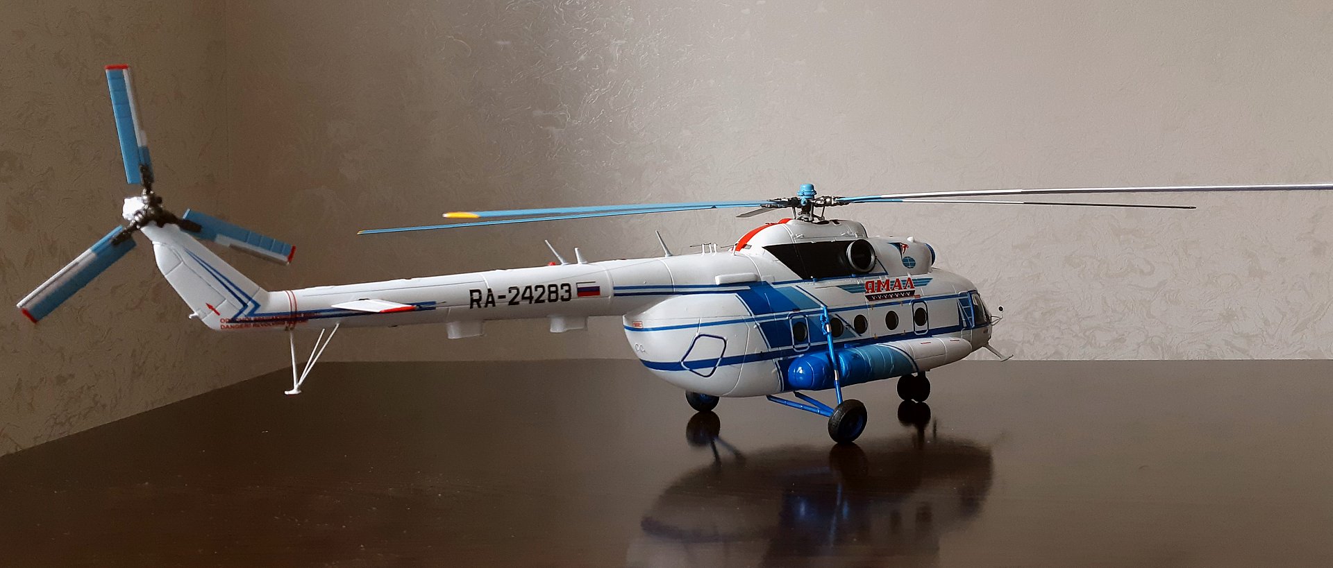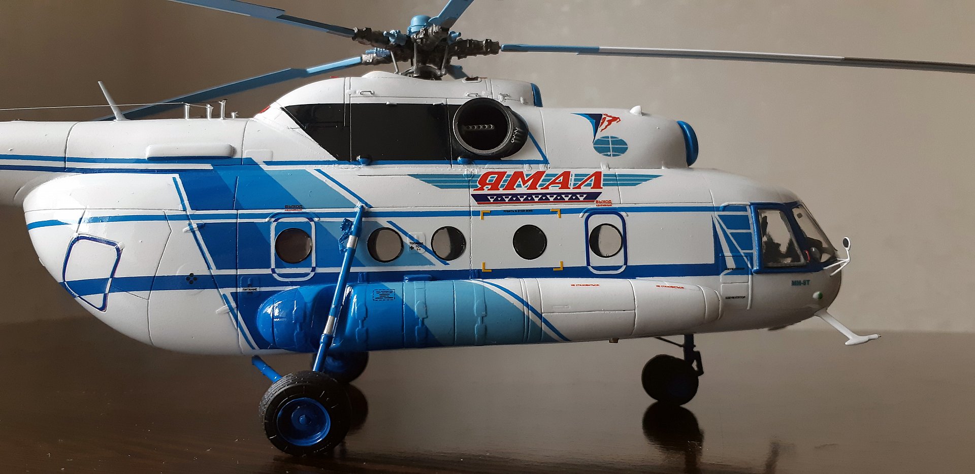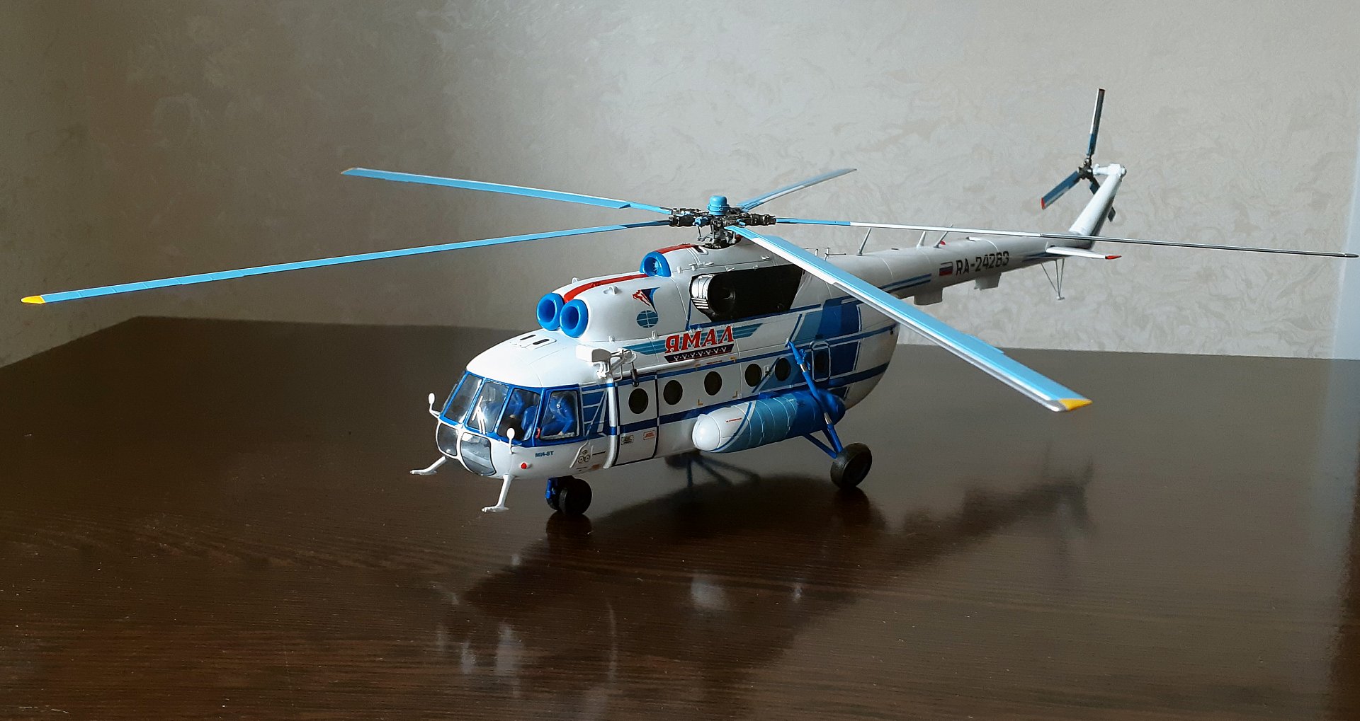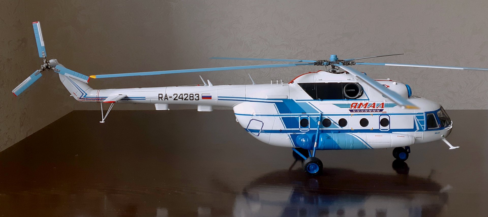Доброго времени суток коллеги! Сегодня решил представить Вашему вниманию модель вертолета МИ-8Т а/к ЯМАЛ в масштабе 1:48, изготовленную на заказ из смолы, с применением пластиковых элементов и комплектующуюся подставкой и кейсом для транспортировки.