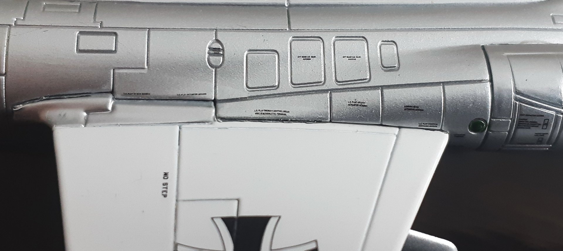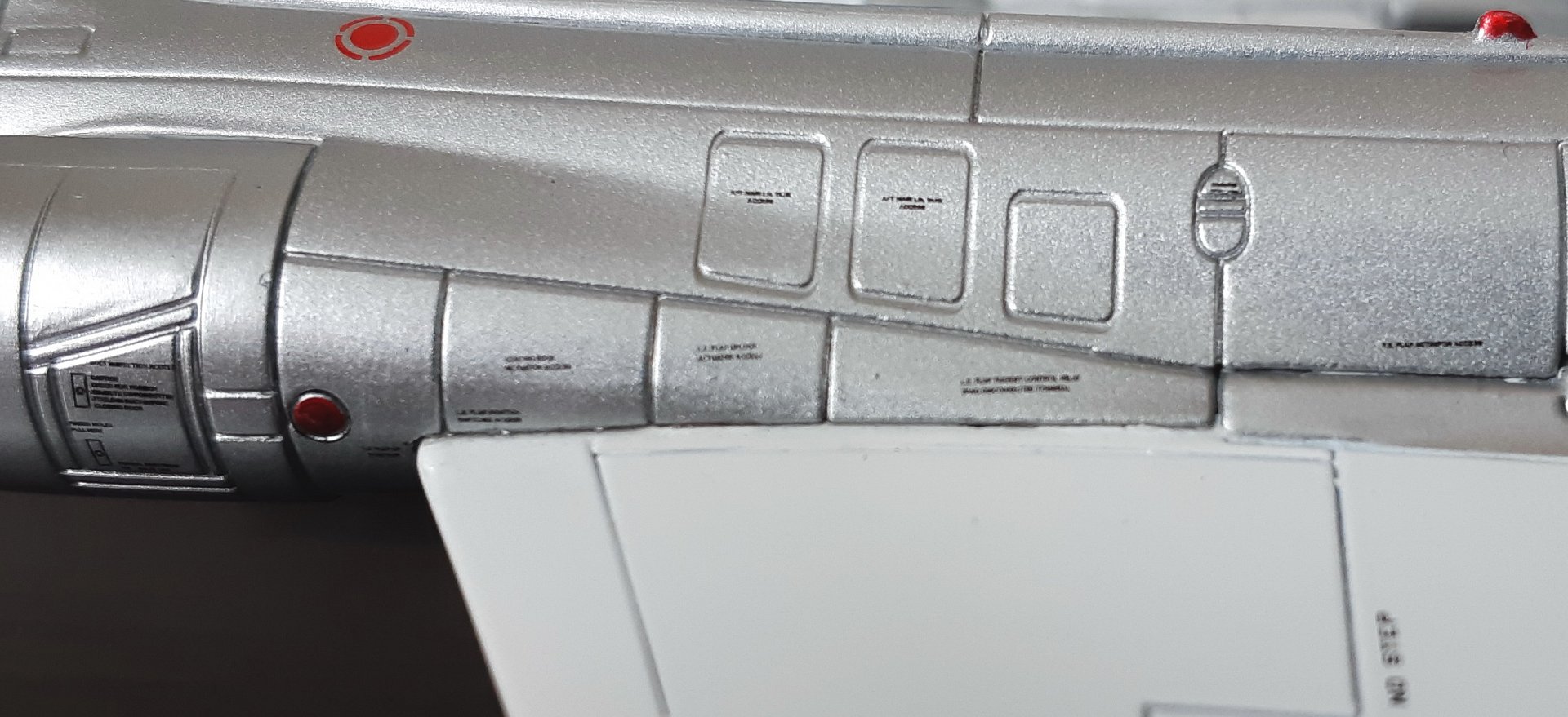 На концах топливных баков, возле его оперения, виден красный бортовой аэронавигационный огонь, который также пришлось дорисовывать.