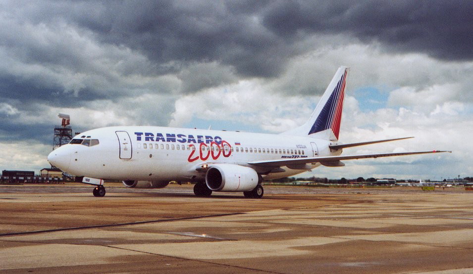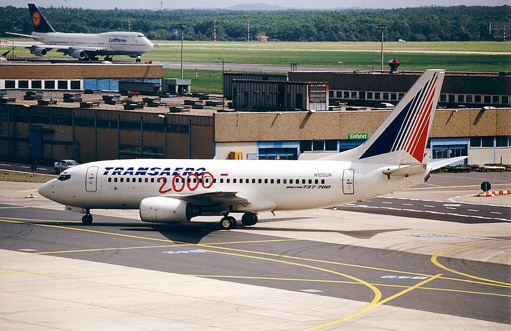 Изначально борт построен для Bavaria Flug с американской регистрацией N100UN. Срок лизинга завершился в конце октября 2004 года, и он улетел к новым хозяевам. На самолете, по левому борту, нанесены большие красные цифры 2000 по левому борту, в напоминание о наступившем Миллениуме. В то время Генеральный директор авиакомпании Александр Плешаков, собственноручно нарисовал эту цифру на схеме ливреи.