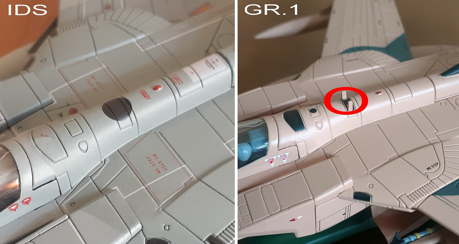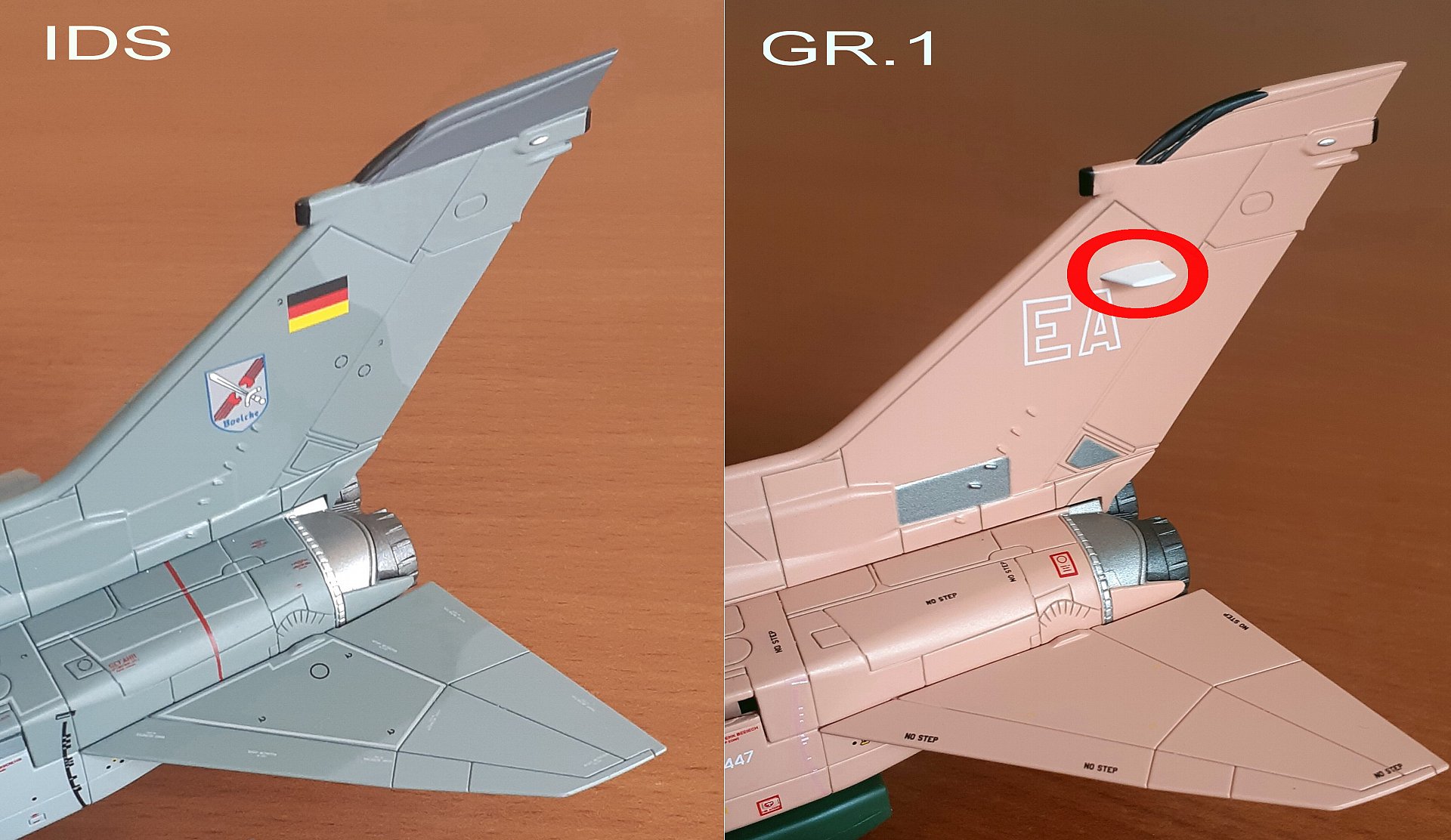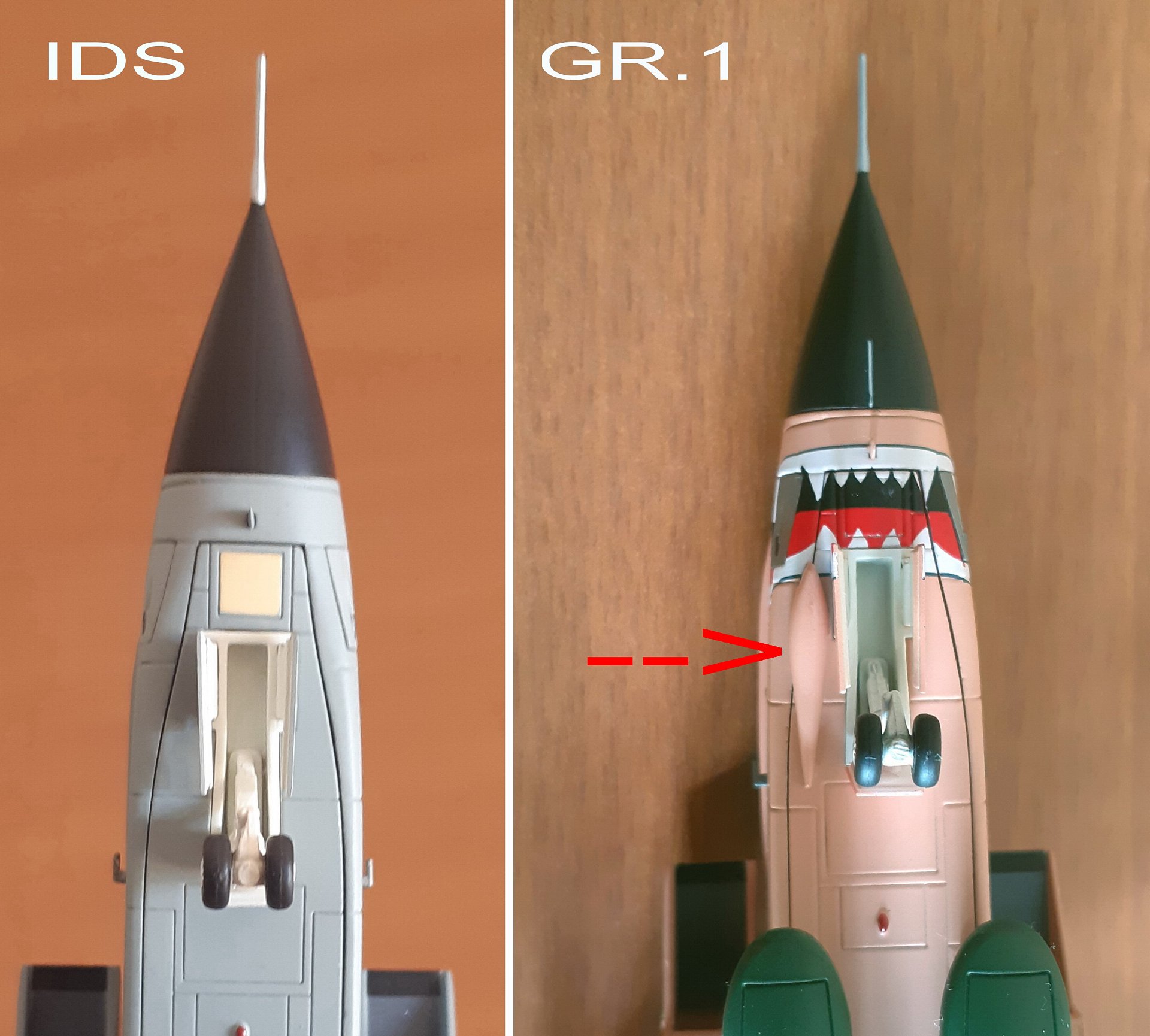 Теперь немного хотелось бы остановиться на внешних конструктивных отличиях Немецкого Panavia Tornado IDS и Британского Panavia Tornado GR.Mk 1. Для лучшего восприятия и наглядности я обозначил отличия.