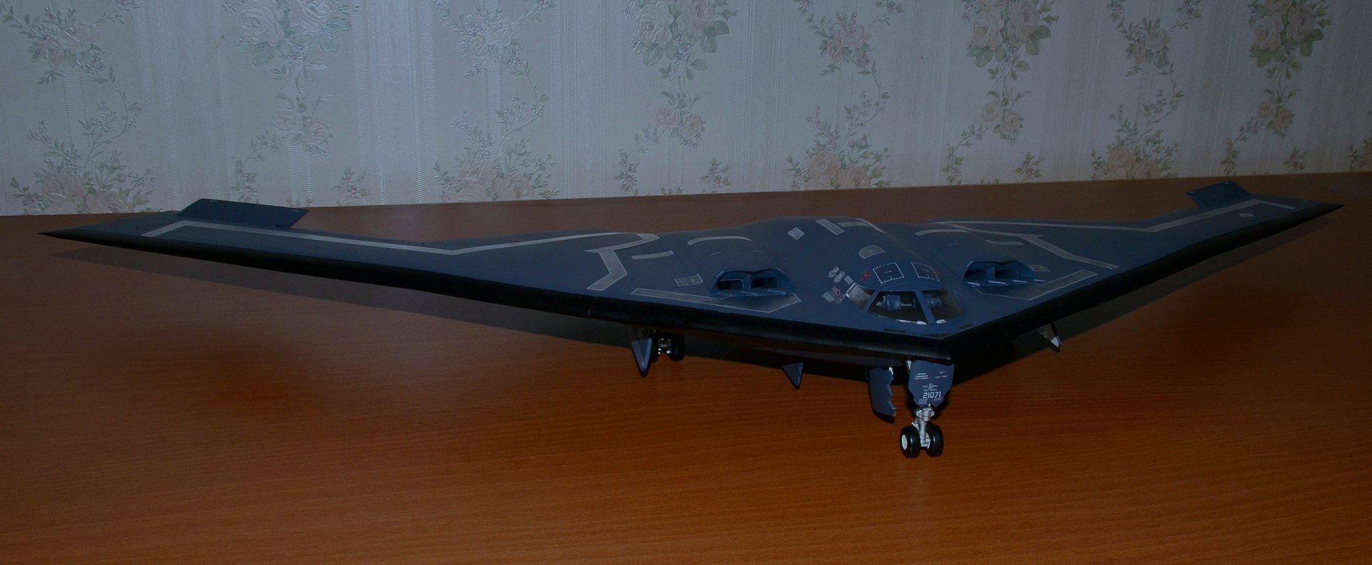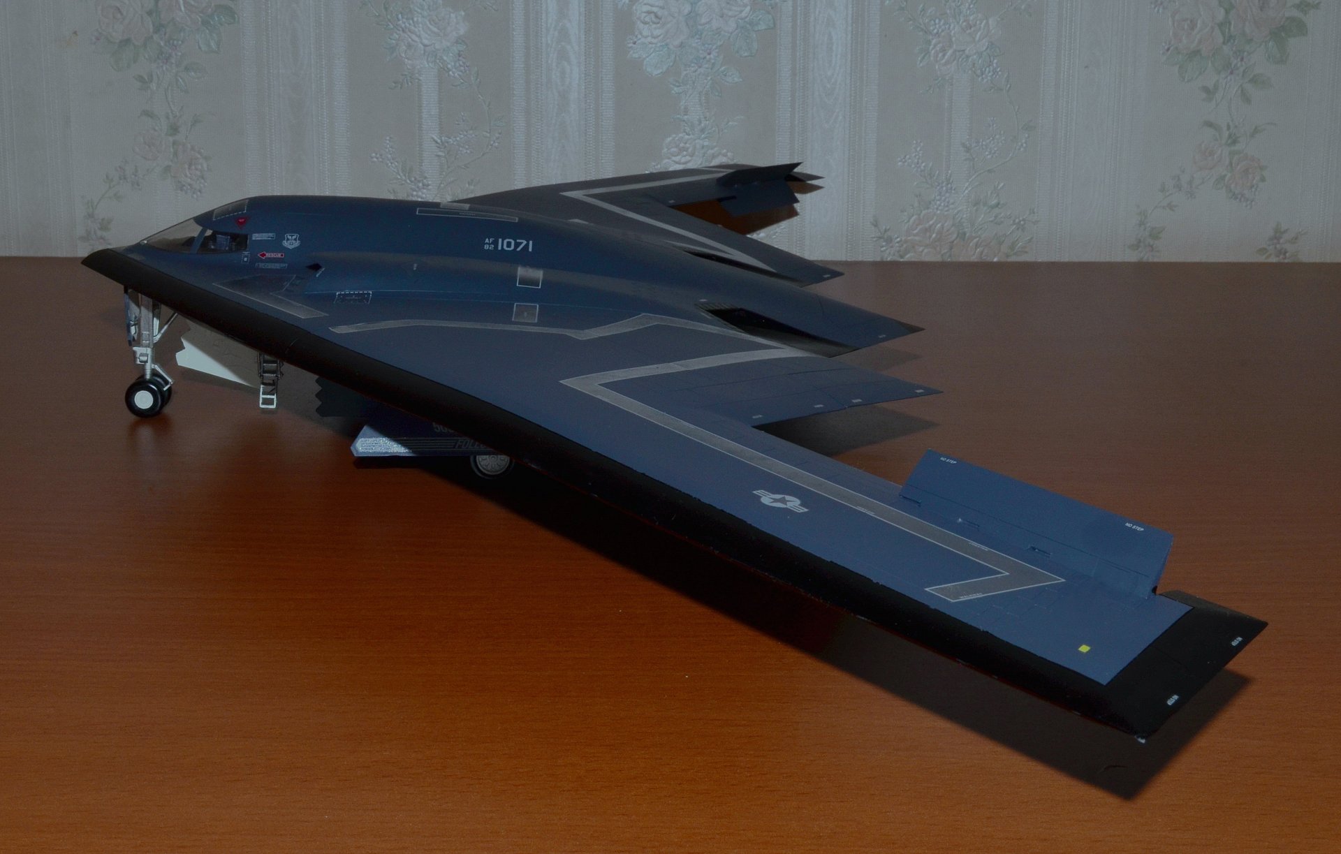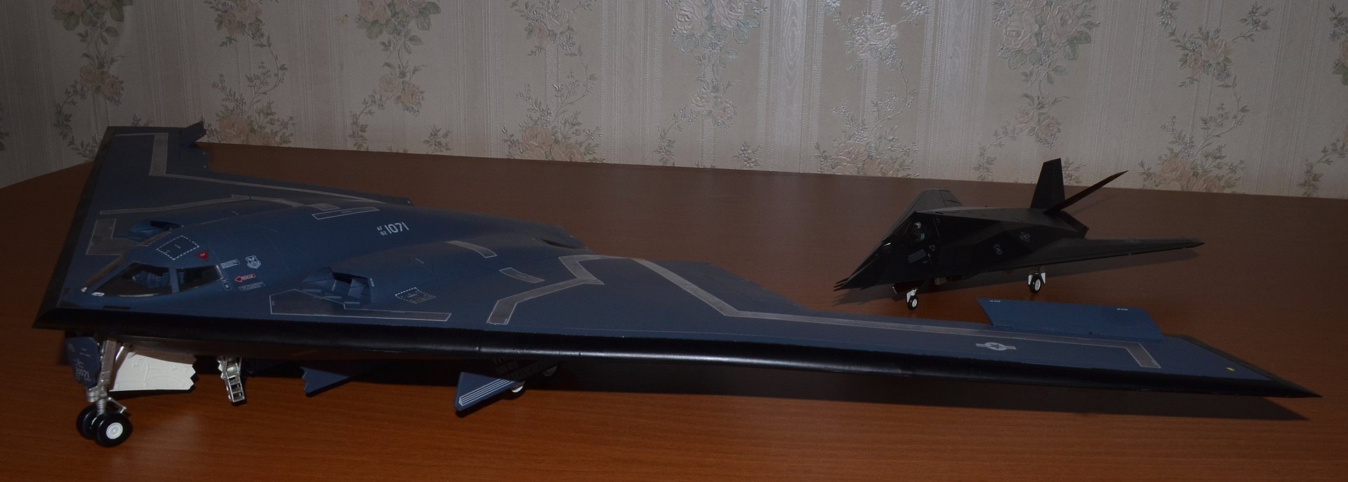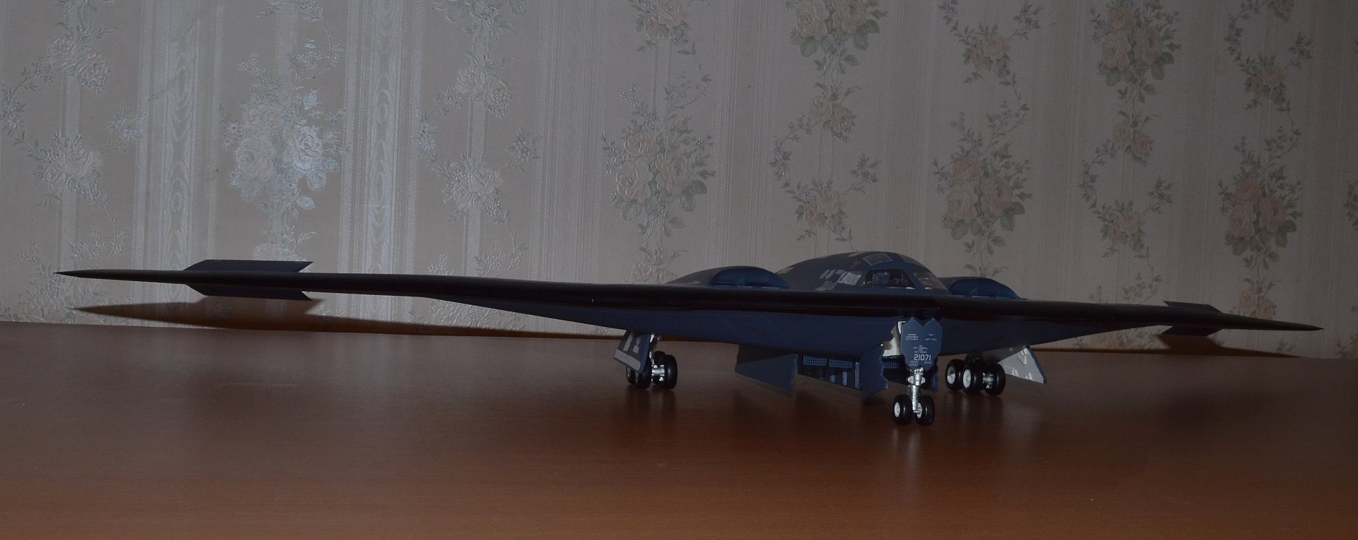 Всем привет!) Сегодня представляю Вашему вниманию модель самолёта-бомбардировщика построенного по технологии Stealth со схемой «летающее крыло» в масштабе 1:72, ручной сборки. Данный тип самолета предназначен для прорыва плотной противовоздушной обороны (ПВО) и доставки обычного или ядерного оружия. Начало полётов с 1989 года, производство прекращено в 2000 году. В самолёте широко использованы технологии малозаметности: самолёт покрыт радиопоглощающими материалами.