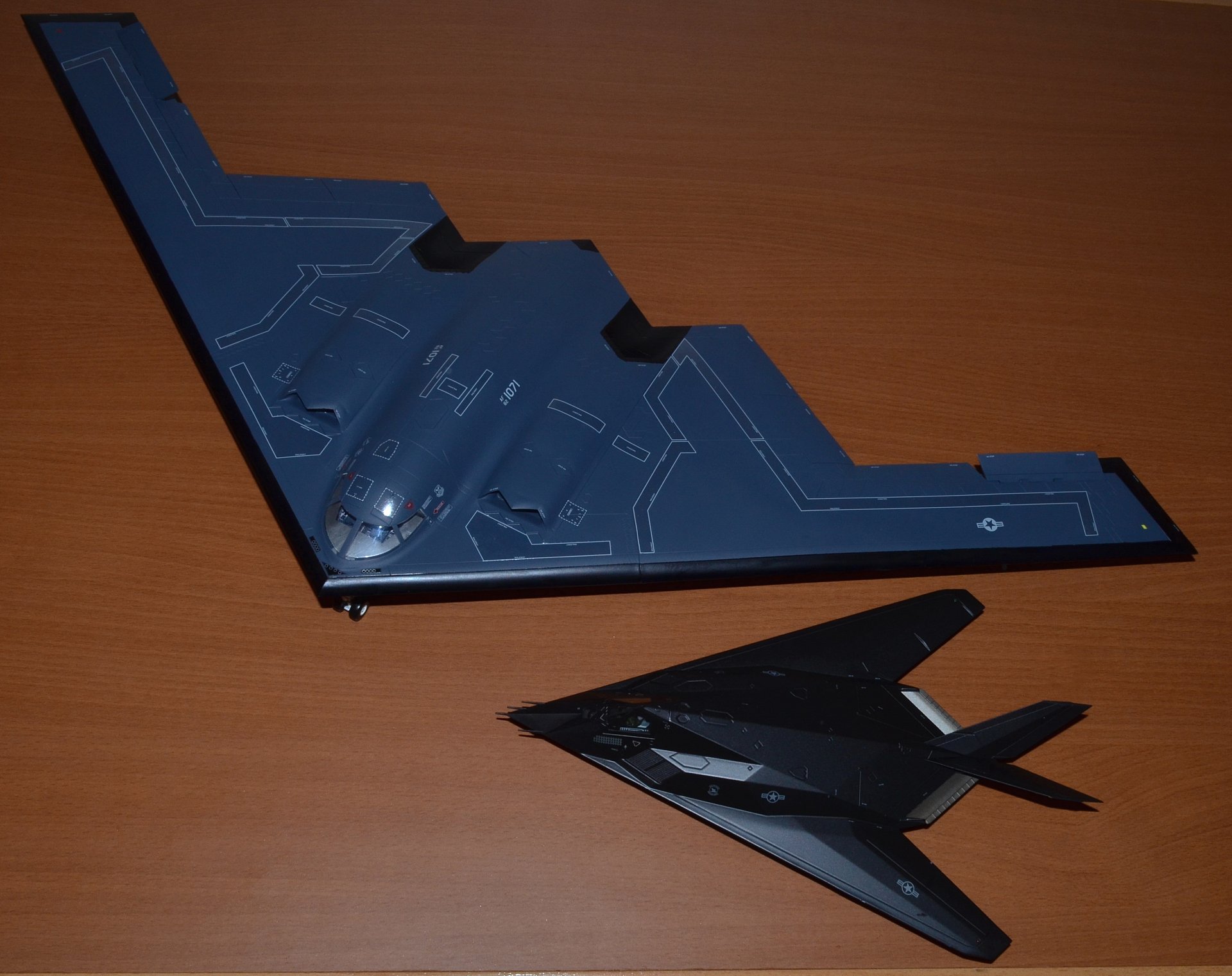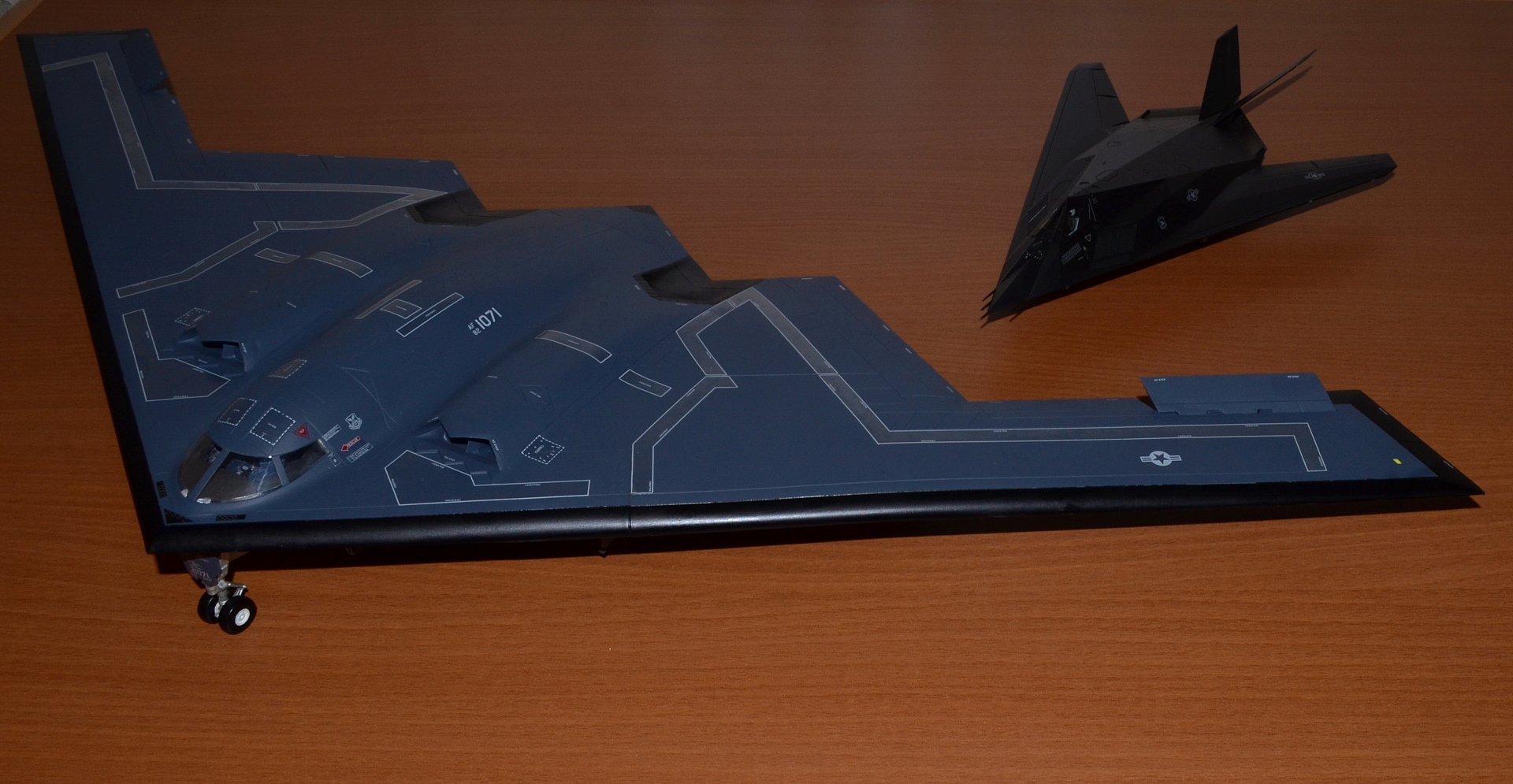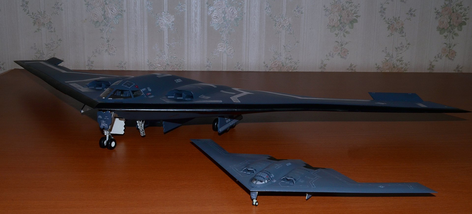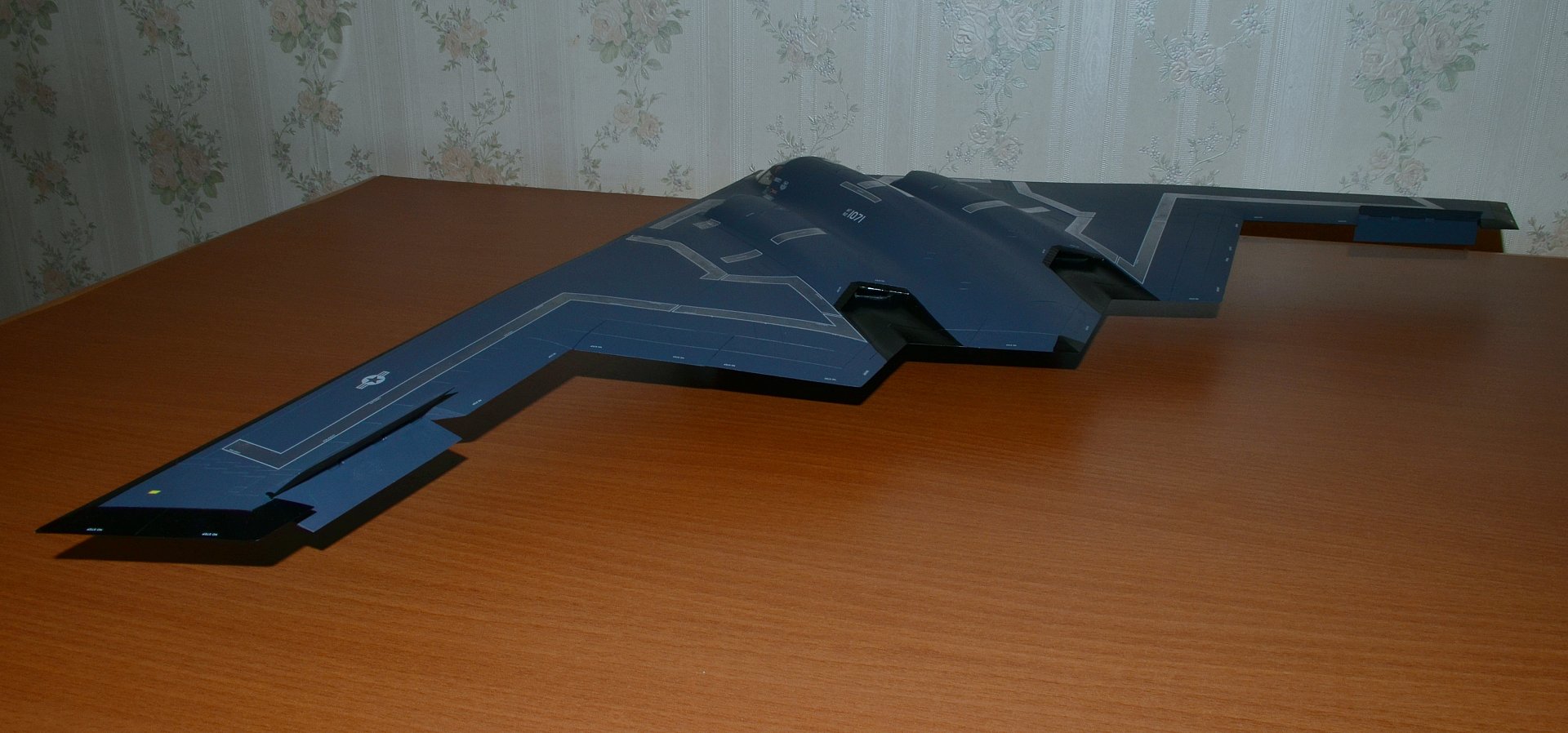 Всем привет!) Сегодня представляю Вашему вниманию модель самолёта-бомбардировщика построенного по технологии Stealth со схемой «летающее крыло» в масштабе 1:72, ручной сборки. Данный тип самолета предназначен для прорыва плотной противовоздушной обороны (ПВО) и доставки обычного или ядерного оружия. Начало полётов с 1989 года, производство прекращено в 2000 году. В самолёте широко использованы технологии малозаметности: самолёт покрыт радиопоглощающими материалами.