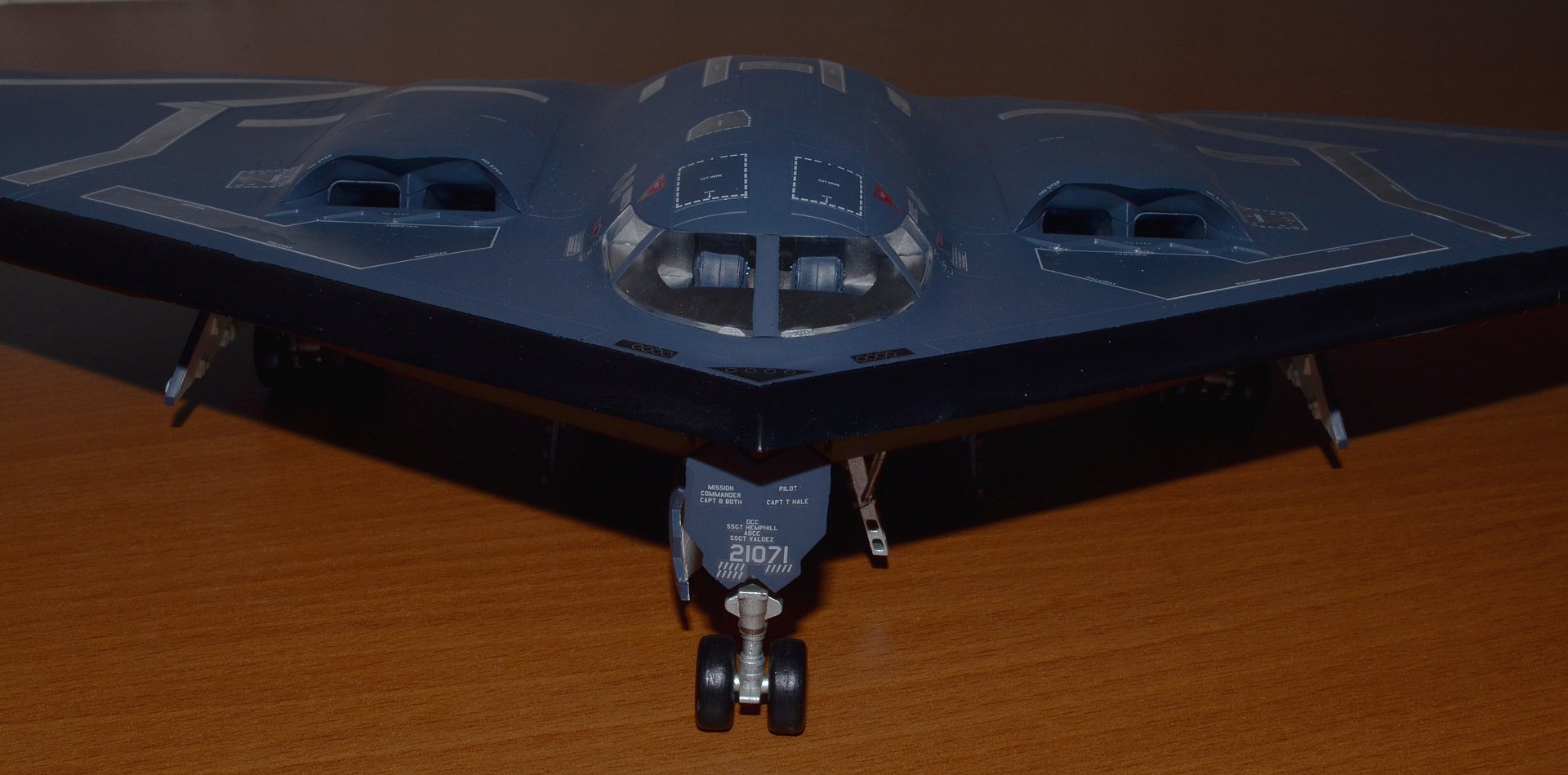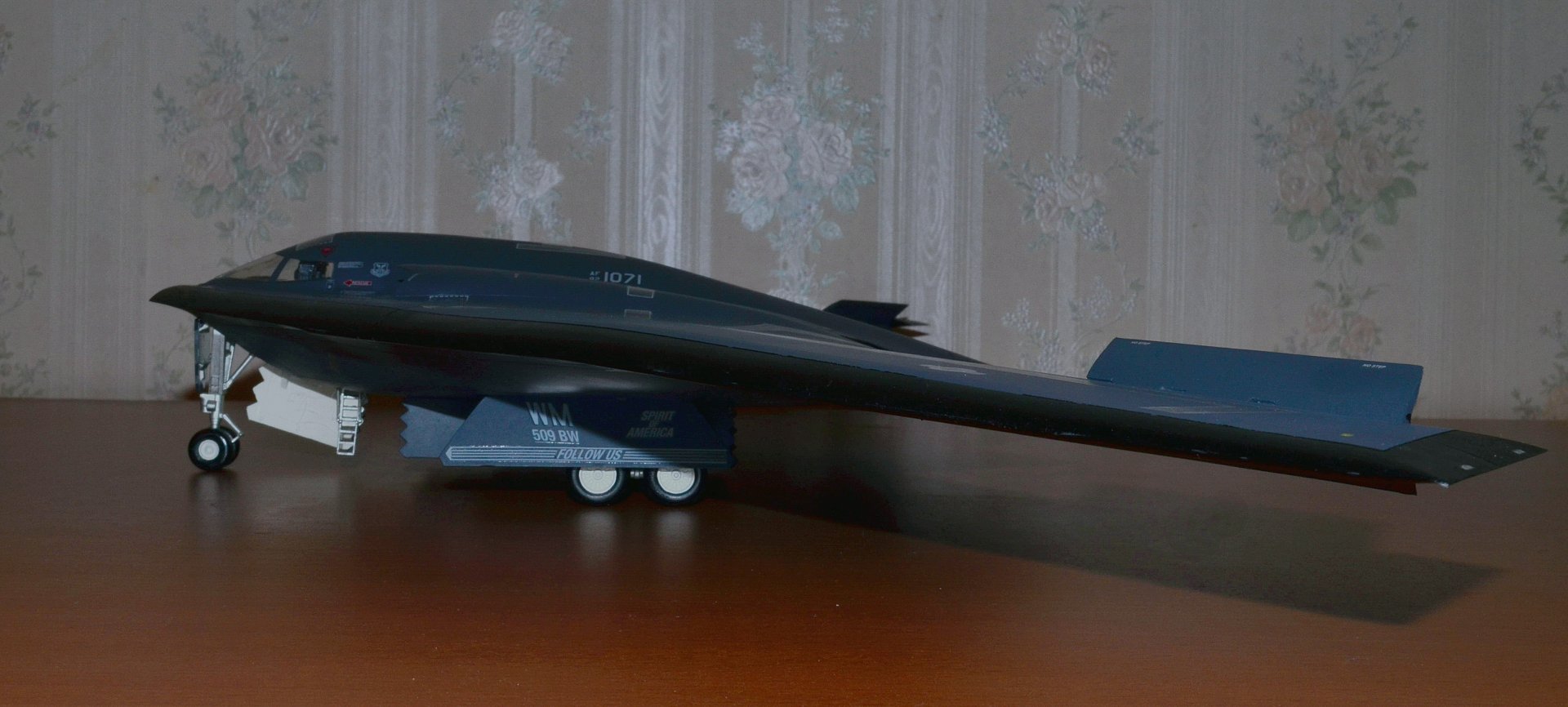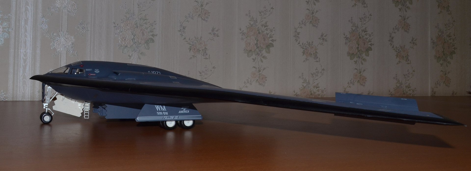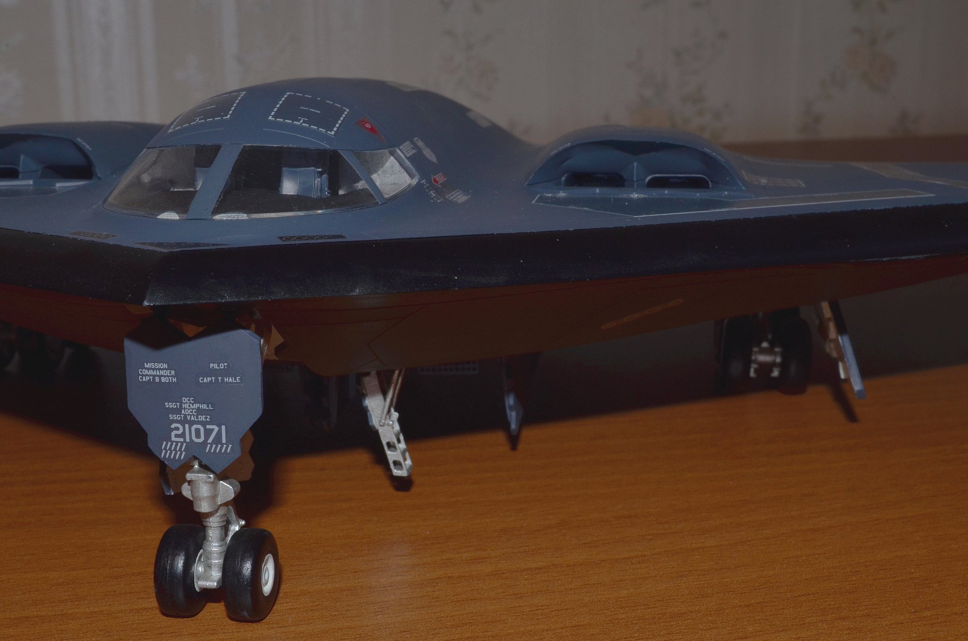 Всем привет!) Сегодня представляю Вашему вниманию модель самолёта-бомбардировщика построенного по технологии Stealth со схемой «летающее крыло» в масштабе 1:72, ручной сборки. Данный тип самолета предназначен для прорыва плотной противовоздушной обороны (ПВО) и доставки обычного или ядерного оружия. Начало полётов с 1989 года, производство прекращено в 2000 году. В самолёте широко использованы технологии малозаметности: самолёт покрыт радиопоглощающими материалами.