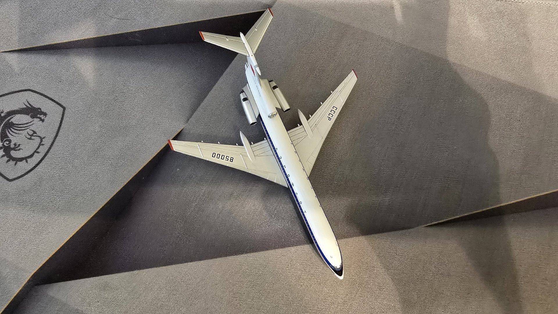 Из достоинств я бы отметил правильно окрашенную ливрею. Китайцы просто взяли модель Ту-154Б и выкрасили ее в ливрею прототипа сильно не заморачиваясь с мелочами.