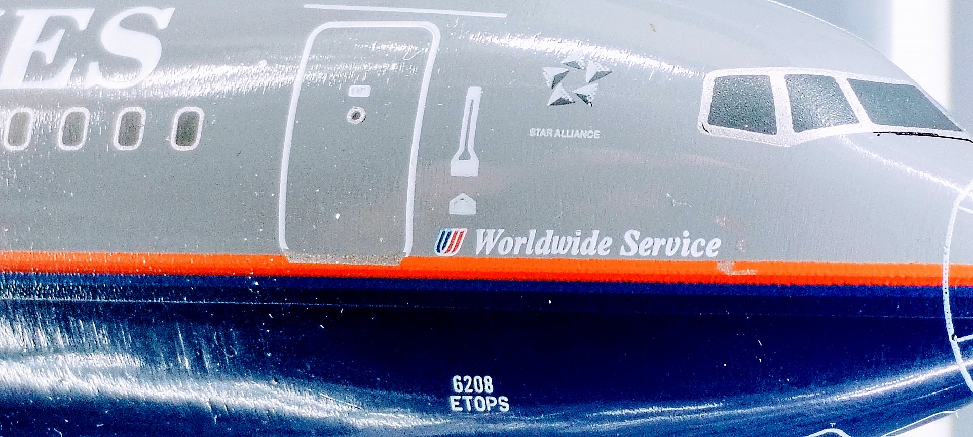 Борт, получивший регистрацию N608UA (относится к модификации 200ET), совершивший первый полет 31.08.1982 года поступил в United airlines 16 сентября 1982 года в ливрее Сола Басса.