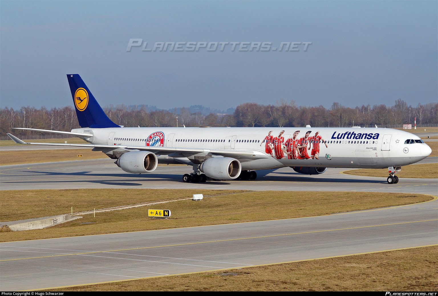 Летом 2017 года футбольный клуб Бавария для своего турне в Китай выбрал именно этот борт. На самолёт нанесли эмблему клуба и изображения главных звезд: Мануэля Мойера, Арьена Роббена, Франка Рибери, Роберта Левандовски и Томаса Мюллера. HERPA в этой ливрее выпустила модель 1:500. До весны 2018 года самолёт с гордостью носил эту ливрею, после чего ему вернули первоначальный вид.