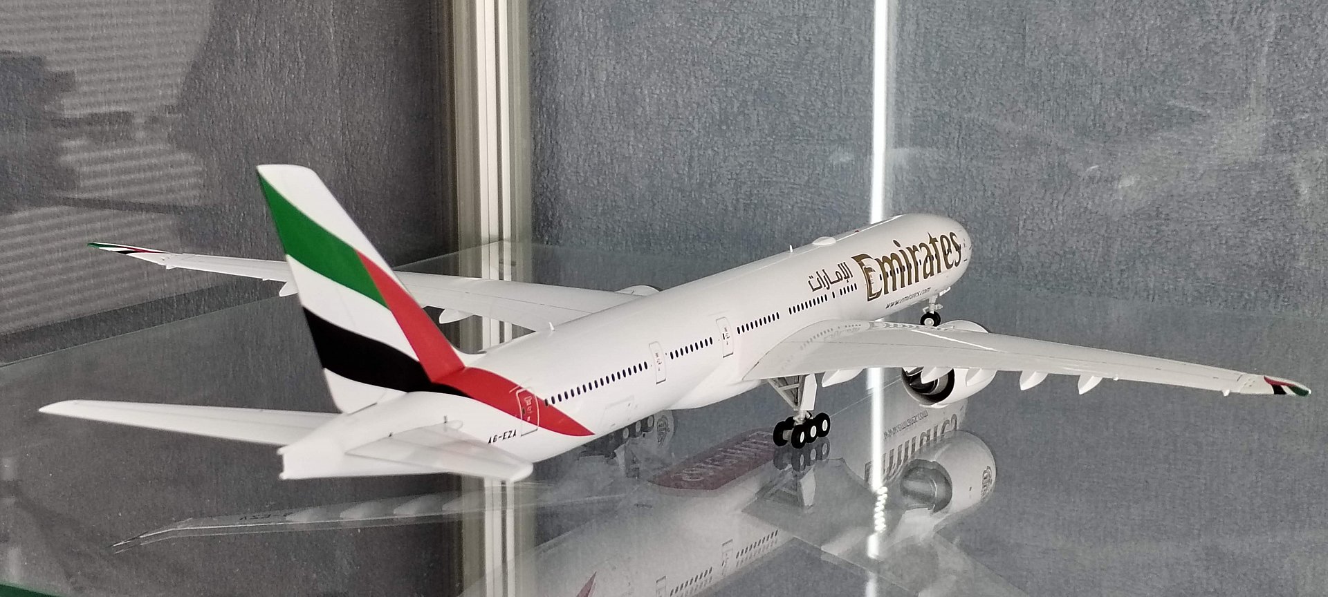 Покупая эту модель в августе 2023 года в Минилайнере я очень надеялся, что в следующем году увижу сообщения о том, что первые из заказанных B 777-9 поступили в парк Emirates. Но чуда в прошлом году не случилось и не случится в ближайшие пару лет.